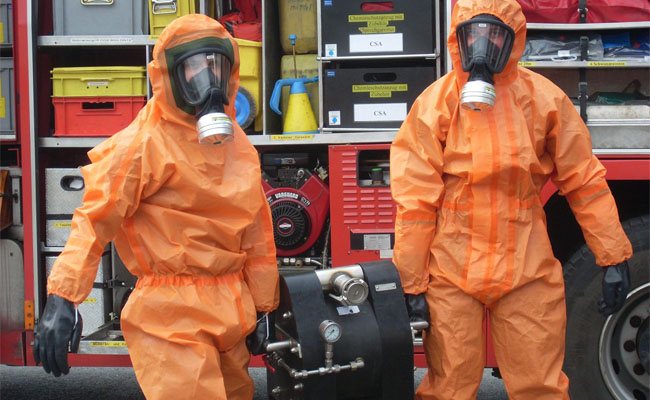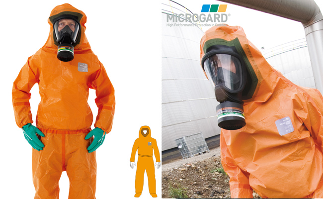 危险品应急小组的后层入口防护服,带橡胶口罩,可与口罩呼吸器紧密配合,是需防护的凶险区域和生物体介质的完美选择;